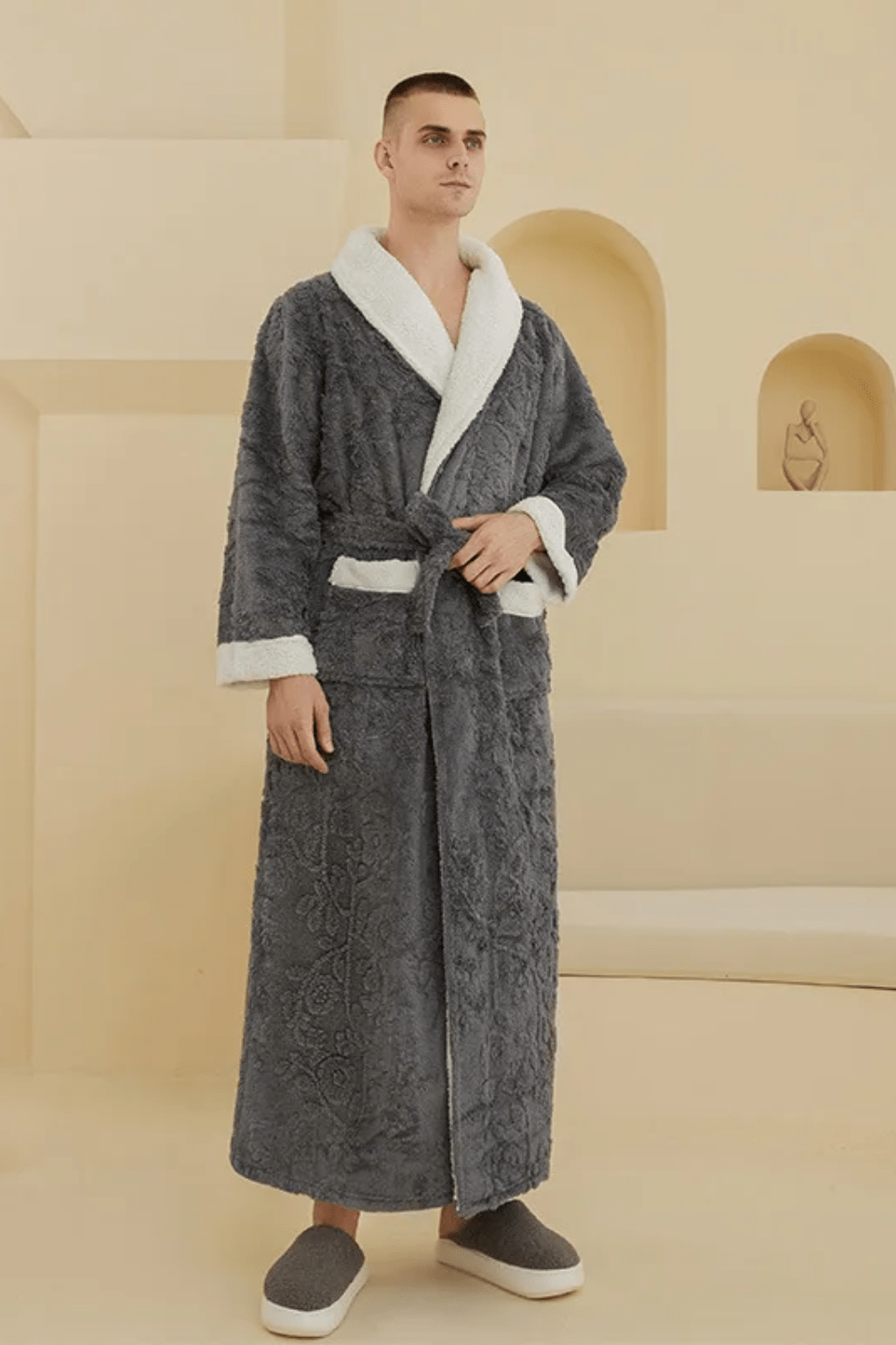 Avec son design raffiné, ce peignoir s’harmonise parfaitement avec votre style de vie et s’adapte à toutes occasions. C’est la promesse d’une élégance discrète au service de votre bien-être, prouvant que le confort peut être synonyme de style sans compromis.