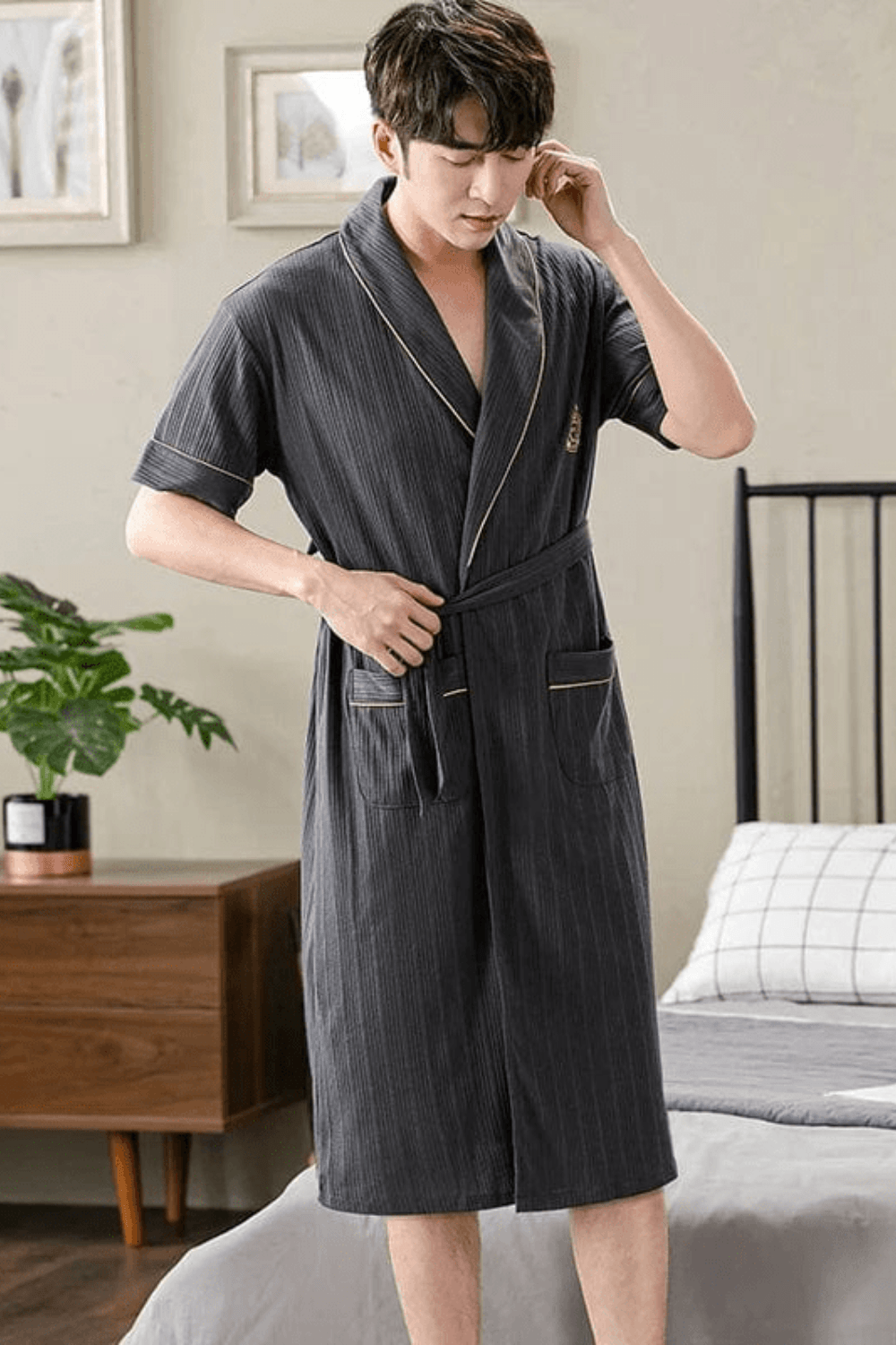 Ce peignoir s’adresse à tous ceux qui refusent de choisir entre confort et style. Conçu pour épouser parfaitement votre morphologie grâce à sa ceinture ajustable, il devient un élément polyvalent de votre garde-robe de nuit, s’adaptant à toutes les saisons tout en maintenant une allure irréprochable.